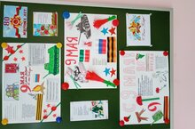 В преддверии Дня Великой Победы, воспитанники групп продлённого дня и обучающиеся начальных классов нарисовали рисунки, в которых отразили своё отношение к этому замечательному празднику. С помощью воспитателей ребята оформили выставку "9 мая. День Победы".