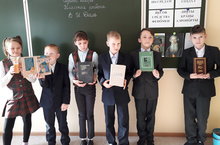 Участников зонального конкурса юных чтецов «Живая классика» с победой. Филиппов В. 1 Б класс – II место (кл. рук. Долгова Л.В.), Соловьёва П. 2 А класс – I место (кл. рук. Трофимова Н.П.), Рыжова Д. 4 В класс – I место (кл. рук. Кутяшова С.Г.)