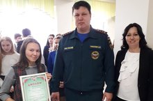 18 октября в МБОУ «Тетюшская СОШ №1 им.Ханжина П.С.» в торжественной обстановке Сафиуллин Д.Х. вручил Васильевой Н.(рук.Булатова Р.И.) Диплом за 2 место в номинации «Декоративно прикладное творчество» Всероссийского конкурса детско-юношеского творчества по пожарной безопасности «Неопалимая Купина».