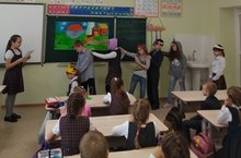 Сегодня в гости к учащимся 2 Б класса (классный руководитель Сумбаева В.И.) пришли ребята из 4 Б класса, они показали сказку на новый лад "Репка". Представление всем очень понравилось, артистам долго аплодировали. -
