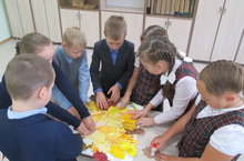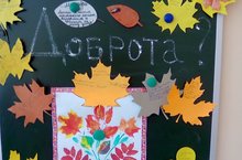 В 4 Б классе прошёл классный час на тему "Что такое доброта?". Каждый ребёнок на осеннем листочке написал о своём добром поступке, которым он гордится.