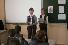 В 4 В классе прошел классный час, посвященный 75-летней дате снятия блокады Ленинграда. Ребята подготовили сообщения о тяжелом времени, когда этот город находился во вражеском кольце. Были прочитаны трогательные стихи. Абмаева А. принесла кусочек ржаного хлеба весом 125 г, чтобы напомнить о блокадном суточном пайке.