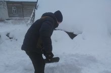 После обильного снегопада юноши 11Б класса помогли в уборке придомовой территории от снега Мавлютовой Г.М.