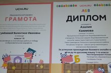 Учащиеся 1 Б класса (классный руководитель Сумбаева В.И.) активно принимают участие в олимпиадах на интерактивной образовательной платформе Учи.ру. Самыми активными участниками являются Волкова У., Каюмова А., Тимершин А., Торгашева Д., Бикчантаевы А. и А., Улбутова Ю. Тимершин А. отмечен Дипломом за высокие результаты в игре ,, Шоколадки,,. Каюмова А. - Дипломом за прохождение базового курса 1- го класса по русскому языку. За активную и сплоченную работу и победу в образовательном марафоне отмечена Сумбаева В.И. и команда 1 Б класса.