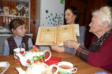 В преддверии Дня Героя Отечества девочки 5В класса: Горелова Вера, Хасанова Диана, Сунарчина Алина побывали в гостях у Зотовой Ектерины Александровны. Накануне учащиеся с классным руководителем Гумеровой Р.Ф. написали письмо со словами благодарности ветеранам. Память об этой войне отходит все дальше. С каждым годом становится все меньше людей, которые не просто помнят войну, но и участвовали в боевых действиях, или были в тылу, трудясь в поту и крови на благо своего народа и Отечества. Сейчас тем самым молодым участникам, что ушли на фронт в 17,18 лет уже 90 , а не каждому человеку дано прожить столько. Все меньше остается в живых и тех сильных духом людей, которые провожали на фронт своих близких, с улыбкой на лице и со слезами на глазах ждали треугольных фронтовых писем, и не дождались их победного возвращения домой. Рассказ вдовы о своем муже Зотове Николае Ивановиче полного кавалера ордена «Славы» надолго останется в памяти девочек.