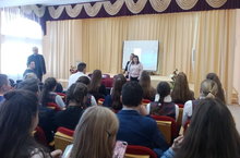 Сотрудник социально-делового клуба "БИНК" Вылетжанина Алсу Вакифовна провела среди учащихся 8-ых классов беседу о выборе профессиию