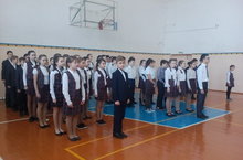 В рамках месячника патриотического воспитания школьников в МБОУ "Тетюшская СОШ №1 им. Ханжина П.С." состоялся конкурс строя и песни. В торжественной обстановке учащиеся 5-6 классов показали хорошую строевую подготовку.