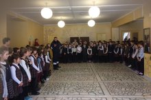 Сегодня в начальных классах проведена линейка с участием сотрудника ГИБДД Алиева А.Р. Инспектор рассказал детям о дорожных происшествиях, которые произошли по причине несоблюдения правил дорожного движения и неосторожности юных пешеходов. Он напомнил о правилах безопасного перехода по пешеходным дорогам, об опасности зимних игр около дорог и необходимости применения световозвращающих элементов для улучшения видимости пешехода в темное время суток.