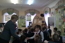 21 апреля учащиеся 2 В класса (кл.рук. Канаева Н.Н.) посетили Тетюшский краеведческий музей. Беседу с ребятами о военном прошлом нашей Тетюшской земли в зале Боевой Славы провела работник музея Ильина Н.В. Каждый из ребят сложил из бумаги треугольный конверт для письма ветерану.