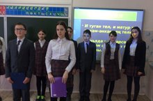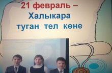 20 нче февраль көнне 7 А сыйныфы укучылары (укытучы Хәсәнова Г.Р.)Галиякберов Ранис һәм Данилова Виктория “Халыкара туган тел” көненә багышлап класс сәгате үткәрделәр. Класс сәгатендә 6АБ сыйныфында укучы татар балалары татар, рус,инглиз телләрендә чыгыш ясадылар.Максаты:укучыларда туган телләренә,татар теленә карата кызыксыну һәм хөрмәт тәрбияләү;белемнәрен тирәнәйтү,иҗади сәләтләрен үстерү.