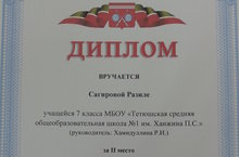 7 А сыйныфы укучысы Сәгыйрова Рәзилә (укытучы Хәмидуллина Р.И) Республика күләмендә үткәрелгән “Илһам” бәйгесенең муниципаль этабында катнашып, “Яшь шагыйрь” номинациясендә II урынны яулады. Котлыйбыз!