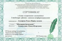 6 нчы А сыйныфы укучысы Сәгыйрова Рәзилә (укытучы Хәмидуллина Р.И.) үзе язган шигырьләрен “А.Алиш эзләреннән” исемендәге I төбәкара фәнни- гамәли конференциясенә юллап, “Шигърият бакчасында” номинациясендә сертификат белән бүләкләнде.