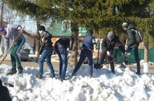 Учащиеся 8А и 8Б классов приняли участие в очистке снега у Монумента Славы.
