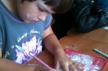 Сегодня в лагере «День творчества». В.И. Сумбаевой дан мастер-класс по тестопластике. Ребята делали из теста сувениры. Ю.А. Еркина провела мастер-класс по созданию картин из цветных камней. Работы получились красочные.