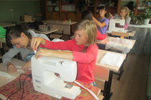 Учащиеся лагеря труда и отдыха «Панама» активно занимаются трудовой деятельностью: ухаживают за клумбами на пришкольной территории, шьют ватно-марлевые повязки для школы.