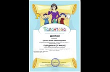 Воспитатель в группе продлённого дня Еркина Ю.А. заняла III место в V Всероссийском творческом конкурсе "Талантоха" в номинации: "Сценарии праздников и мероприятий в школе".