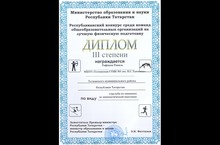 Ученик нашей школы Рафиков Равиль награждён дипломом III степени Республиканского конкурса среди команд общеобразовательных организаций на лучшую физическую подготовку по виду "Стрельба по мишеням из пневматической винтовки".