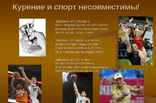 В 8А классе прошел классный час по теме «Курение и спорт несовместимости» Цели занятия: воспитание ценностного отношения к собственному здоровью; разъяснение пагубного действия никотина и компонентов табачного дыма на дыхательную, сердечно-сосудистую, пищеварительную и нервную системы; пропаганда здорового образа жизни.