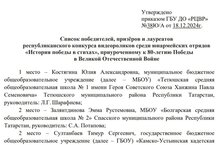 Ученица 11 класса МБОУ "Тетюшская СОШ №1 им.Ханжина П.С." одержала победу в республиканском конкурсе видеороликов среди юнармейских отрядов "История победы в стихах", приуроченному к 80-летию Победы в Великой Отечественной войне (наставник: Л.Г.Шарафиева).