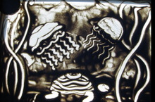 Продолжает свою работу кружок «Рисование песком» (руководитель Фирсова И.В.). Представлена работа «Подводный мир» ученицы 6 «б» класса Рахматуллиной Эвелины.