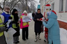 В рамках профилактической акции "Пешеход" отряд ЮИД МБОУ "Тетюшская СОШ №1 им. Ханжина П.С." вышел в центр города с целью предупреждения жителей о соблюдении правил дорожной безопасности и безопасном переходе дорог пешеходами. Ребята, совместно с начальником Буинского отделения отдела профилактики ГБУ г. Казани "Безопасность дорожного движения " С. М. Мурзаковой, раздали памятки и поздравили всех с наступающим праздником, а Дед Мороз раздал световозвращающие брелки, которые помогут пешеходам быть заметнее на дороге в тёмное время суток. (рук. отр. Самойлова А. Н.)