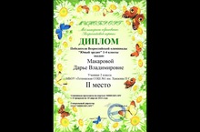 Ученица 2В класса, Макарова Дарья, заняла 2 место во Всероссийской олимпиаде "Юный эрудит (1-4 классы)"