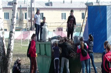 В субботу на уборку города вышли учителя и ученики. Они убирали мусор, белили деревья и бордюры.