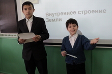 Один из лучших географов нашей школы ученик 11 класса Курочкин Александр подготовил и провел интересную игру "Географический интеллектуальный футбол" в 8А классе.