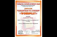 Гилязова Лиля, ученица 11 класса, стала победителем в международной олимпиаде по лингвострановедению "WorldPlay" и получила диплом победителя III степени (преподаватель Габдрахманова Г.Х.)