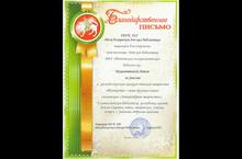 Благодаственными письмами ГБУК РТ "Республиканская детская библиотека" в республиканском конкурсе детского творчества "Татарстан - наша дружная семья" в номинации "Литературное творчество" награждены учащиеся 4В класса Мухаметшина Лейсан и Горшкова Арина (кл.рук Аввакумова Л.А.)