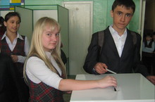 В школе прошли выборы депутатов школьных Дум. Из 17 кандидатов в депутаты победу одержали: 1) Мазюкин Игорь-138 голосов (52,2%), Пирогова Ангелина – 25 голосов (9,48%), Егорова Диана – 22 голоса (8.3%), Тугушева Лейсан – (7,7 %), Кудяев Антон – 15 голосов (5,69%). Всего проголосовали 265 человек, это 59% от количества учащихся. 04.04.2012