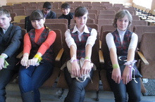 Неделя психологии. День 8. День позитивных эмоций и чувств. Общешкольная акция «Подари хорошее настроение». Дети дарили друг другу хорошее настроение, завязывая цветные ленточки на руки. 07.03.2012