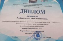 Призёром муниципального этапа Всероссийского конкурса сочинений "Без срока давности" признана ученица 6 Б класса Хайруллина Алина (руководитель Трифонова Евгения Ивановна).