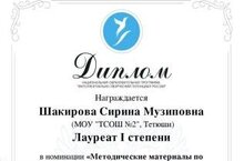 Поздравляем Шакирову Сирину Музиповну - лауреата I степени Всероссийского конкурса педагогов "Научный потенциал России" в номинации "Методические материалы по организации исследовательской и проектной деятельности учащихся". Желаем новых творческих побед и вдохновения!