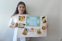 6а класс укучысы Матиева Азалия “Татар халык ашлары” дигән темага плакат ясады. Ул 7 төрле ризыкның тарихын өйрәнде һәм классташлары алдында чыгыш ясады.