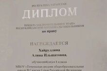 Поздравляем Хайруллину Алину- призера заключительного этапа Республиканской олимпиады школьников по праву и ее наставника Татьяну Геннадьевну!!! Желаем новых побед и свершений!