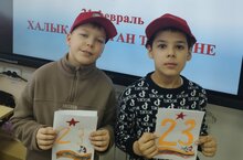 В рамках нацпроекта «Молодежь и дети», подпроекта «Все лучшее детям», Года единства народов в Российской Федерации, с целью сохранения родного татарского языка учащиеся 2А класса с учителем родного татарского языка Нафигиной Г.А. в преддверии праздника Защиты Отечества изготовили открытки для своих пап и подписали на родном татарском языке.