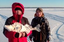 В морозный день 8 января группа учеников 6Б класса вместе с классным руководителем Трифоновой Е.И. совершила пешую прогулку на берег Волги. Волга прекрасна в любое время года! Но зимой особенно поражает необыкновенная тишина, лишь изредка нарушаемая шумом снегоходов. Это рыбаки. Рыбаки-люди особенные, им зима и холод нипочём. Они очень разговорчивы, но секретами рыбалки делятся неохотно. Зато с удовольствием позволили мальчишкам сфотографироваться с огромным судаком.