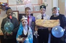 В день родного языка и в день рождения великого поэта Габдуллы Тукая наша школа встретила учителей и учеников у входа самой школы. Ученики 6а класса(учитель Фаткуллова С.Х), которые проводили акцию, преобразились в героев из произведений поэта. Кого только не было: Шурале с одним глазом, водяная со своим золотым гребнем, забавный ченик со своей собачкой Акбаем и Батыр. Сказочные герои просили назвать 10 слов на татарском, ответившим дали призы. Стены были украшены шарами и масками из сказок Г.Тукая, а у входа среди цветов стоял портрет поэта.