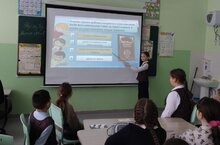 Учащиеся 4 класса МБОУ «Тетюшская СОШ №2 им. А.А. Соколовского» посмотрели киноурок. Советник директора по воспитанию Саматова Г.Н. и классный руководитель Минаева Д.Д. вместе с учениками 4 А класса посмотрели киноурок «ЭРА».