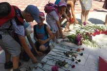 Воспитанники лагеря почтили память погибших в годы войны минутой молчания на митинге у Монумента Славы и возложили цветы к Вечному огню.