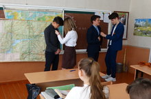 В рамках акции "Георгиевская лента - 2019" члены Совета старшеклассников провели акцию "Присоединяйся!" Ребята предлагали всем, кто еще не присоединился к акции, георгиевские ленты, объясняли значение данной акции для всех россиян.
