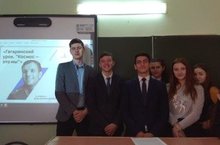 Сегодня в 9А классе (классный руководитель Вавилова В.Н.) был проведен «Гагаринский урок «Космос – это мы», посвященный памятным датам: 60-летие Решения ЦК КПСС и Совета министров СССР об отборе и подготовке космонавтов к первому космическому полету; 85-летие со дня рождения Ю.А. Гагарина; 85-летие легендарных Дважды Героев Советского Союза, летчиков-космонавтов Гагаринского набора А. А. Леонова, В. Ф. Быковского и Б. В. Волынова. Учащиеся посмотрели исторические кадры запуска первого пилотируемого космического корабля, первый выход в открытый космос и приветствие космонавтов с международной космической станции.