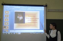 Ученики 8б класса (кл. рук. Галиуллина М.Р.) на классном часе говорили о видах коррупции и познакомились с презентацией, посвященной Международному дню борьбы с коррупцией. Борьба с коррупцией - дело государственное. А порядочность – качество индивидуальное. Коррупция - это злоупотребление государственными полномочиями с целью получения личной выгоды. Коррупция не ограничивается взяточничеством, включает также незаконное завладение публичными средствами для частного пользования и непотизм. Главным орудием в борьбе стало создание в 1974 году Независимой Комиссии против коррупции. В 2011 году разработано антикоррупционное законодательство. Также дети узнали номер телефона 576-77-65,по которому они могут позвонить, если столкнутся с фактами коррупции.