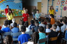 В третий день смены пришкольного лагеря «Светофорик» воспитанники побывали на экскурсии в Детской библиотеке, где ответили на вопросы викторины «Путешествие по Сказкограду», определили кто самый сильный, потренировались в произношении скороговорок, вспомнили песни из мультфильмов и решили много задач на смекалку.