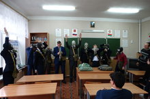 2 сентября 2017 года в 9-ых классах учителем ОБЖ Похлебкиным А.В. в рамках акции «Всероссийский урок по основам безопасности жизнедеятельности» прошёл урок ОБЖ по теме «Средства индивидуальной защиты органов дыхания и кожи». Ребята познакомились с правилами одевания защитной одежды и соревновались в одевании противогаза на скорость. Победил юнармеец Егоров Дмитрий с результатом 3, 27 секунды.