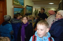 Выставка прошла на «ура!». Ребята с удовольствием посмотрели портреты наших земляков, пейзажи нашего города. Но особенно всем запомнилась картина «Портрет» х/м 50*40, на которой лицо человека было изображено неявно, рваными мазками, жёсткими, холодными тонами.