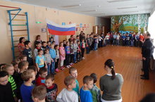 На торжественной линейке ребята пели гимн России. Наши вожатые подготовили Агитбригаду о столь знаменательном празднике.