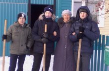 И вновь учащиеся 8б класса ( классный руководитель - Шакирова С.М.) поспешили к Форафончевой Т.В. Снега выпало много, но ребята с огромным удовольствием очистили от снега территорию возле дома. Все получили удовольствие от проделанной работы.