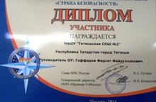 Учащиеся 2 б класса (классный руководитель Михеева Ирина Юрьевна): Хохлов Максим, Нальгиев Адам, Казаева Сабрина, Портнова Карина, Барабанов Павел активно участвовали в IV Всероссийском конкурсе детских рисунков «Страна безопасности» и награждены дипломами участников. Школа отмечена дипломом Главы МЧС России В. А. Пучкова и Генерального директора ООО «Премьер-УчФильм» И. Н. Качевского за неоценимый вклад в развитие культуры безопасности.